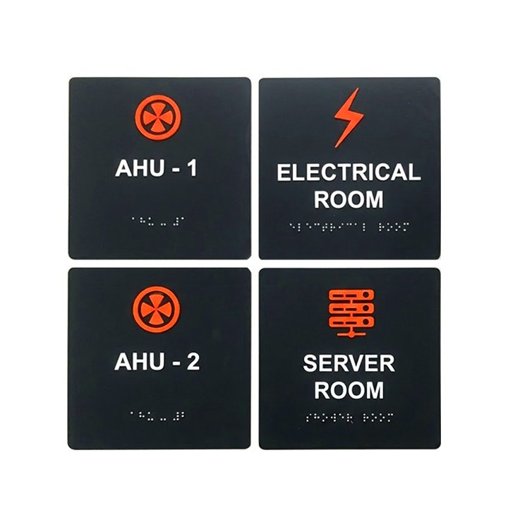 Built for durability and clarity, it is ideal for industrial facilities, commercial buildings, hospitals, and public infrastructure. With a clean and professional finish, this signage enhances safety, organization, and inclusive wayfinding within essential service areas.