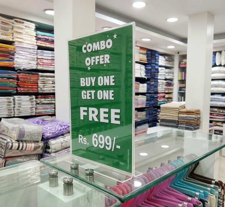 Printed using high-quality satin finish, it provides sharp visuals with a smooth, glare-free appearance. Crafted from durable acrylic, it ensures long-lasting performance and a premium look. Ideal for retail stores, showrooms, and promotional displays, this board enhances visibility while maintaining a clean and professional presentation.