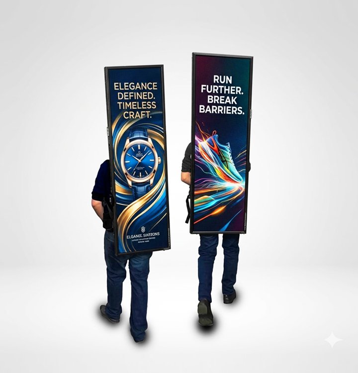 With quick content updates via USB or WiFi, this walking advertising solution is ideal for brands looking for high-impact, mobile promotion that stands out from static signage.
