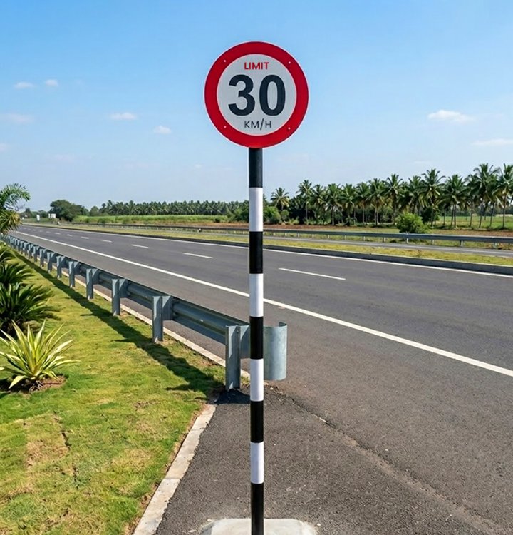 Ensure effective traffic control and safety with our Speed Limit Signage, manufactured using durable ACP (Aluminium Composite Panel) and finished with high-quality reflective vinyl and UV printing. Designed for maximum visibility, this signage clearly communicates speed restrictions to drivers during both day and night conditions.