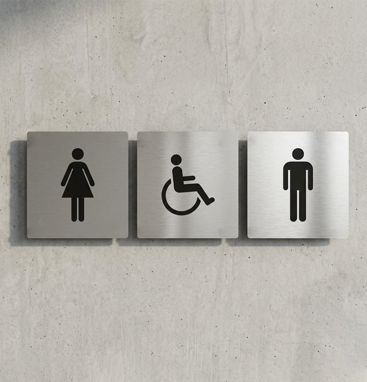 These stainless steel (SS) toilet signs offer a durable and premium solution for clear restroom identification. Sized at 6 x 6 inches, they feature precision etching and engraving for sharp, permanent text and symbols with a clean, professional finish.