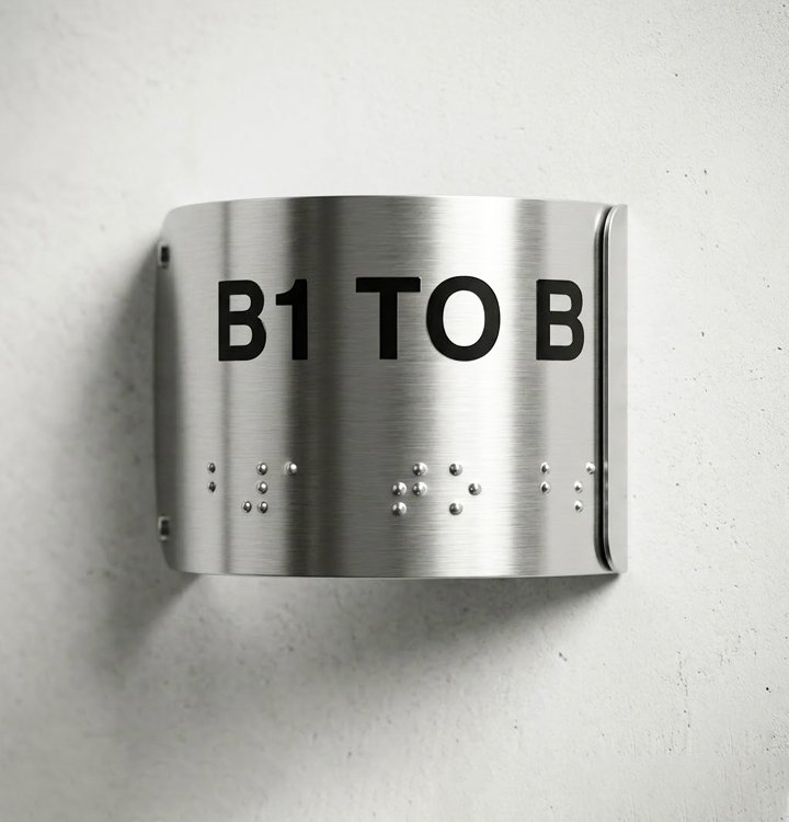SS handrail braille signage is designed to provide accessible navigation support directly on handrails. Available in custom sizes, it features raised tactile text and braille elements that comply with ADA standards, helping visually impaired individuals identify directions, floor levels, or locations with ease.