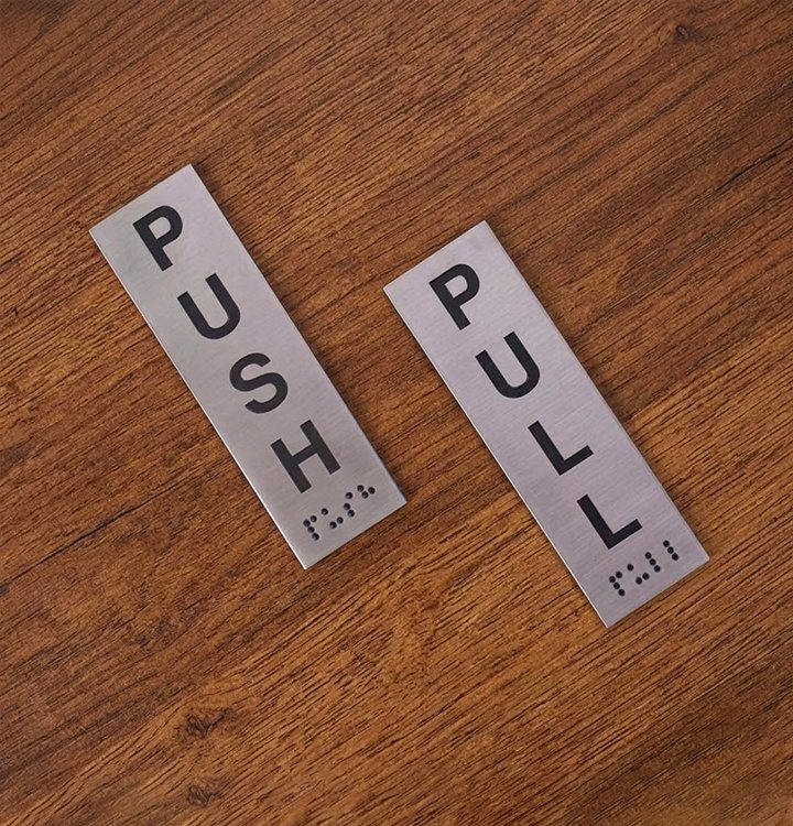 SS Push Pull | 40 x 120 MM | Tactile ADA Compliant Signage
