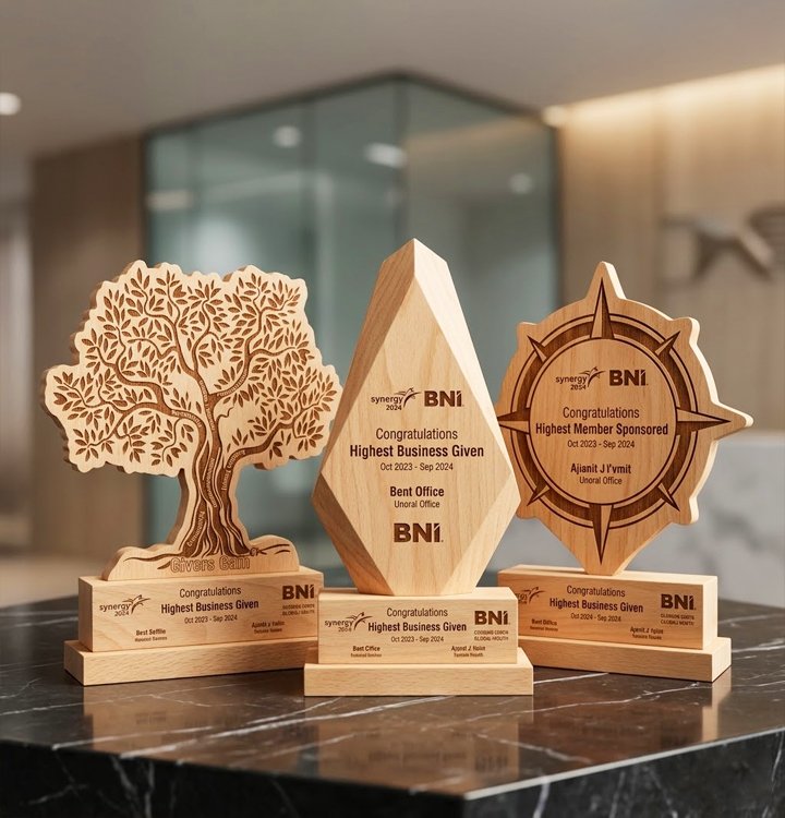 Featuring precision engraving, it delivers sharp and long-lasting detailing for names, logos, and messages. The natural wood grain enhances its premium appeal, making it perfect for corporate awards, events, competitions, and special recognitions.